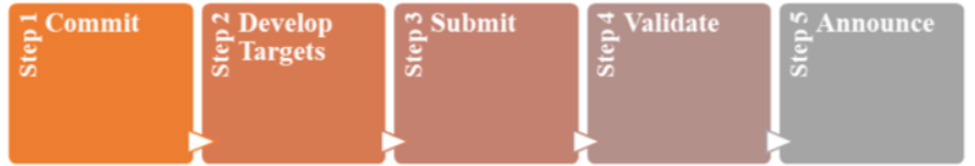 Để tăng độ tin cậy của các cam kết net-zero, SBTi cũng cung cấp dịch vụ thẩm định mục tiêu của cấc doanh nghiệp. Để đạt được sự công nhận của SBTi, doanh nghiệp cần thực hiện các bước sau: